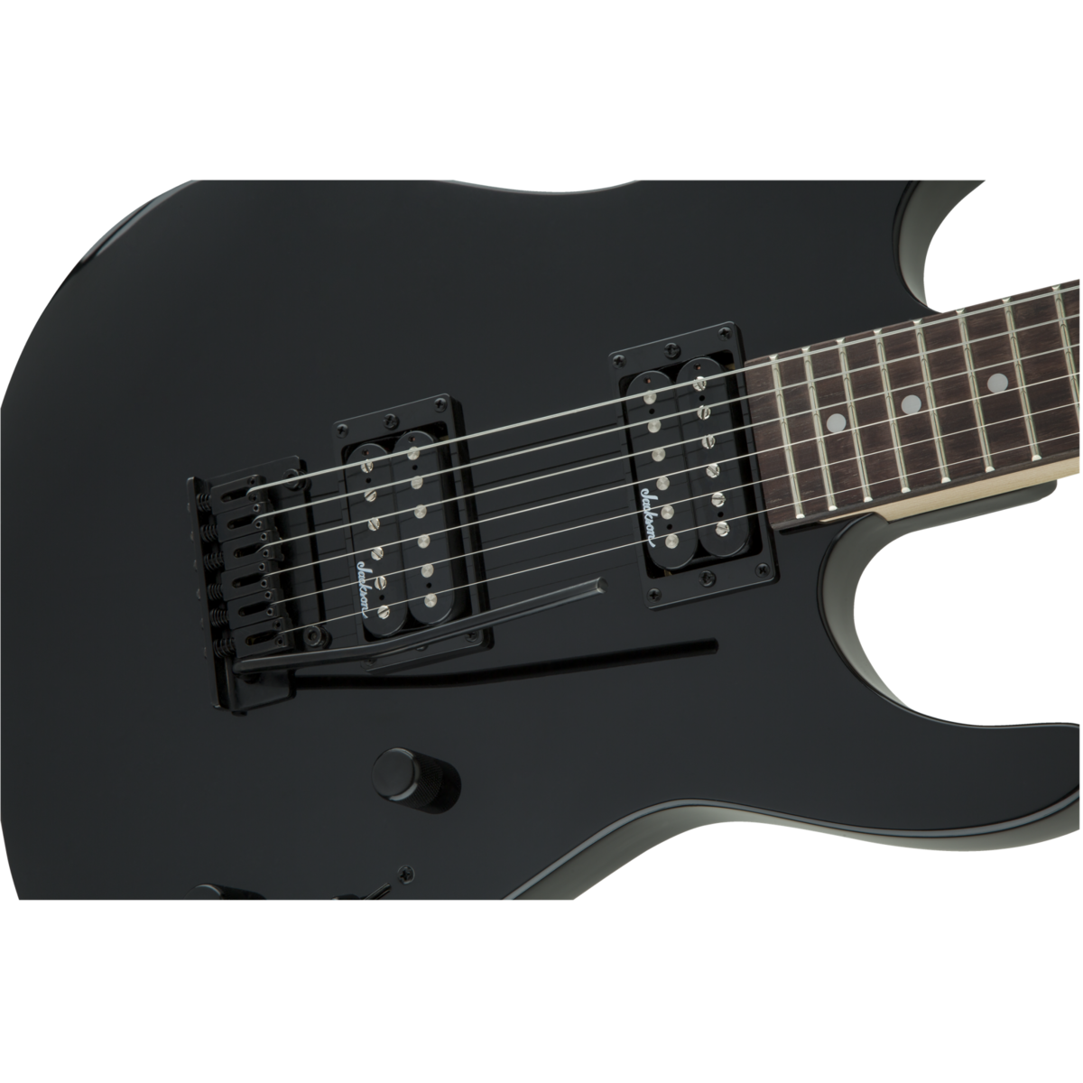 A pair of Jackson high-output humbucking pickups with ceramic magnets cranks out clear tone with plenty of girth, and can be shaped with a three-way toggle switch and single volume and tone controls.